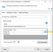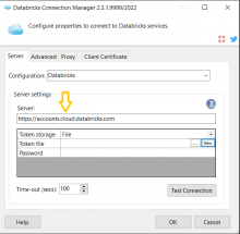 Configuration is provided for establishing connections with the Databricks service. The configuration is used in the REST Connection Manager.