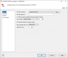 Use the General page of the PDF Source dialog to specify the source PDF file and settings which table to process and how to do it.
