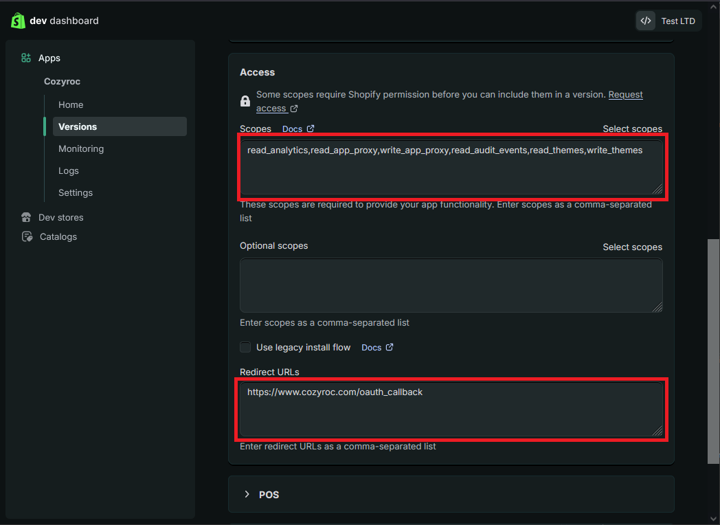 - Password: Required. Specify your private app Admin API password.
