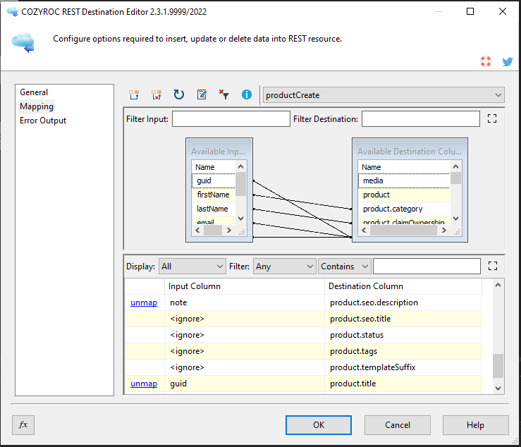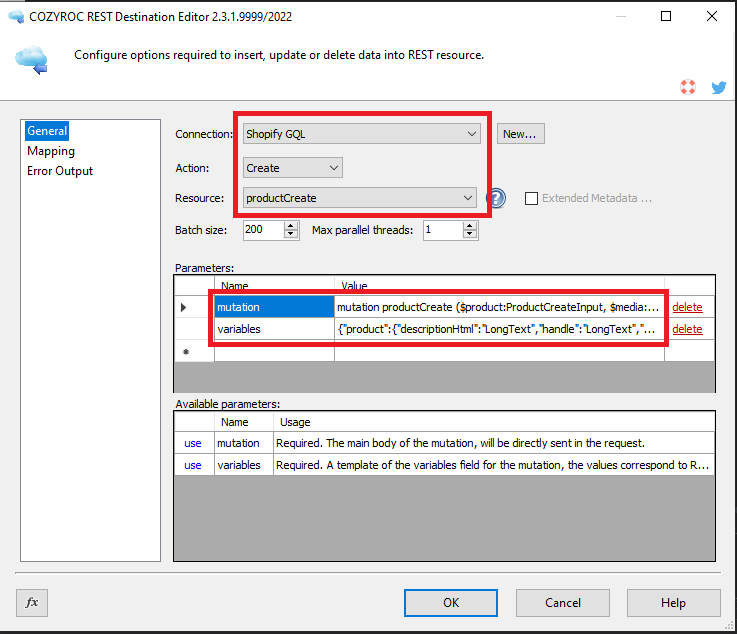 In this guide, we will show how to write data to the Shopify GraphQL service resource using the COZYROC REST Destination component.