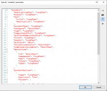 - variables: Format should be a valid JSON e.g. { "myVar": "myVarValue" }. Optional.